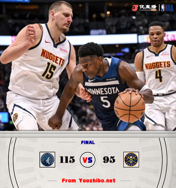 森林狼115-95大胜掘金! 赛季三杀!爱德华兹29分 约基奇34+8