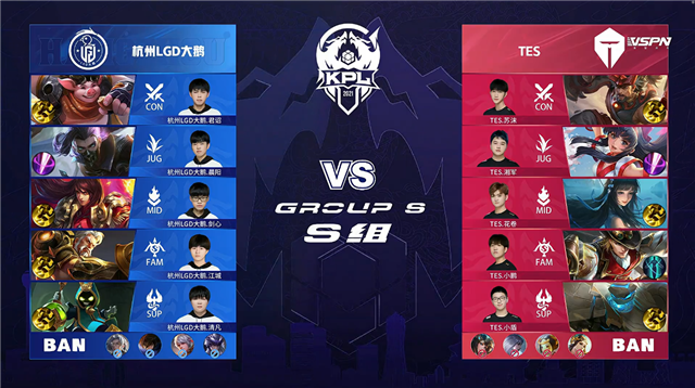 开局TES入侵敌方野区未果。1分11秒TES拿下中路河道之灵。1分29秒杭州LGD大鹅野区击杀大乔拿到一血。2分10秒杭州LGD大鹅拿下暴君。4分13秒TES拿下主宰。4分24秒杭州LGD大鹅下路击杀姜子牙。6分27秒杭州LGD大鹅拿下暴君。7分20秒双方互换边路外塔。7分53秒TES摧毁敌方上路外塔。8分26秒TES拿下暴君,中路团战TES击杀鲁班大师。8分58秒双方中路1换1。10分01秒TES上路打出0换2。10分27秒TES摧毁敌方上路二塔。10分49秒TES拿下暗影暴君。11分01秒TES摧毁敌方中路外塔。12分38秒TES拿下暗影主宰,双方团战1换1。12分48秒杭州LGD大鹅摧毁敌方中路外塔。13分22秒中路团战TES打出0换2。13分48秒TES摧毁敌方中路、上路高地塔。13分58秒TES摧毁敌方水晶拿下比赛。