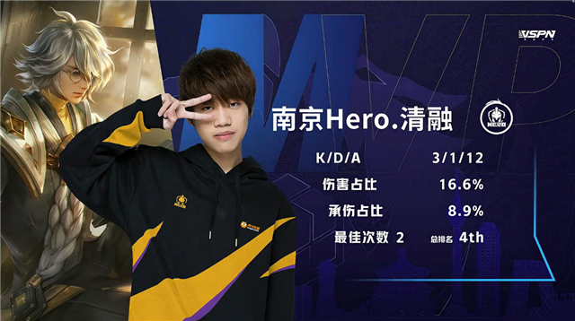 开局南京Hero吕布、不知火舞换线。2分30秒暴君处团战南京Hero拿下暴君并打出0换2。3分38秒南京Hero野区打出0换2。4分05秒南京Hero摧毁敌方上路外塔。4分24秒南京Hero拿下主宰。4分50秒南京Hero摧毁敌方下路外塔。5分25秒南京Hero野区击杀盾山。5分36秒南京Hero越塔打出1换4并摧毁中路外塔。6分52秒南京Hero下路越塔击杀盾山并摧毁敌方下路二塔。7分05秒南京Hero拿下暴君。7分50秒南京Hero摧毁敌方中路二塔。8分04秒南京Hero摧毁敌方上路二塔。8分40秒南京Hero拿下主宰。10分15秒南京Hero拿下暗影主宰。10分54秒南京Hero拿下暗影暴君。11分30秒南京Hero高地团战打出0换4摧毁水晶拿下比赛,南京Hero曜拿下四连超凡。