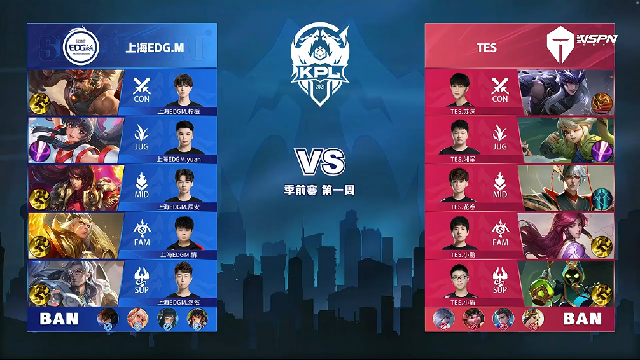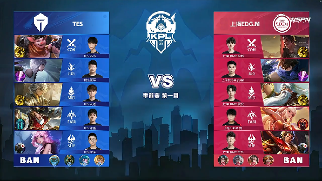 24直播网 3月11日2021KPL春季赛季前赛第一周第一日比赛,由TES vs 上海EDG.M,以下是本场比赛快讯。