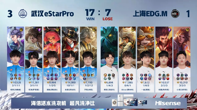 第四局,前期双方有来有回。关键时刻,eStar的绝意使用马可波罗自信大招旋转进场,打出大量伤害,帮助队伍赢得团战。最终eStar顺利拿下第四局,以3-1的总比分获得比赛胜利。