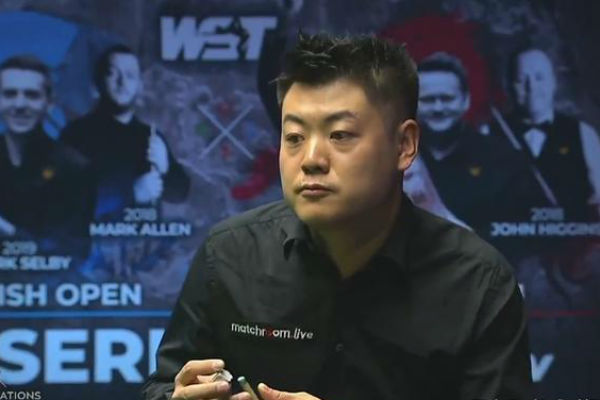 决胜局,梁文博单杆21分,红球不进;米尔金斯单杆74分超10分;梁文博继续努力,梁文博打进一颗红球,黑球不进认输