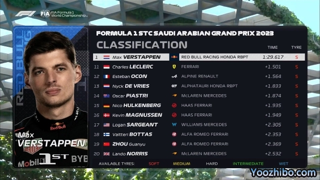 24直播网讯 北京时间03月17日,2023年F1沙特大奖赛第1次练习赛在吉达赛道结束,维斯塔潘1:29.617取得一练头名,佩雷兹落后0.483秒位列第二,红牛车队再次包揽一二。阿斯顿·马丁车队紧随其后,阿隆索和斯托尔分列第三和第四,他们与维斯塔潘的差距分别为0.698秒和0.960秒。