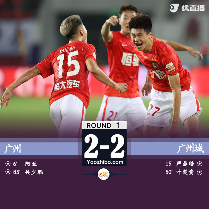 24直播网4月20日讯 北京时间4月20日20:00,新赛季中超首轮一场焦点战在广州队和广州城之间进行。上半场阿兰打入新赛季首球,黄政宇制造严鼎皓乌龙,韩佳奇扑出艾克森点球。下半场吉列尔梅助攻叶楚贵反超,吴少聪替补扳平比分。最终广州队2-2战平广州城。