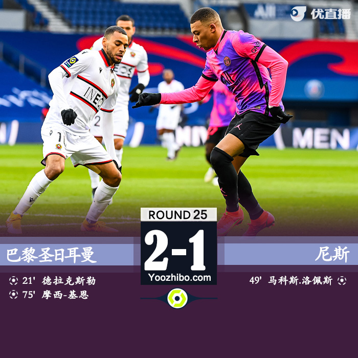 24直播网2月14日讯 北京时间2月14日00:00,法甲第25轮,巴黎圣日耳曼主场对阵尼斯。上半场,伊卡尔迪铲射中柱,德拉克斯勒跟上补射破门;下半场,罗尼-洛佩斯利用马尔基尼奥斯失误扳平比分,小基恩助巴黎再度取得领先。最终,巴黎圣日耳曼2-1击败尼斯,多赛一场积分追平里尔,以净胜球优势暂时登顶法甲积分榜。