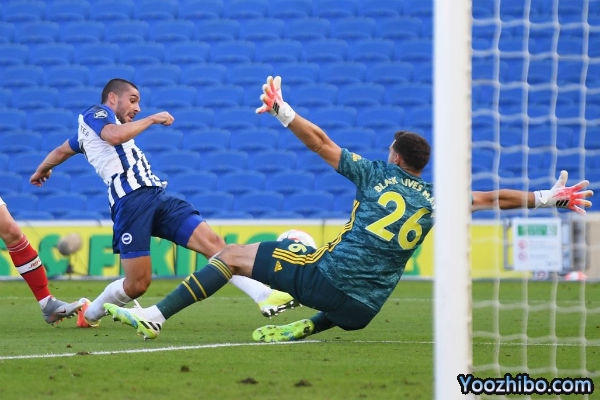 主裁一声哨响,比赛正式开始。第5分钟,布莱顿后场横传失误,奥巴梅扬断球后选择自己突进,大禁区弧前沿空当中直接起脚远射攻门,皮球力量稍大高出球门。