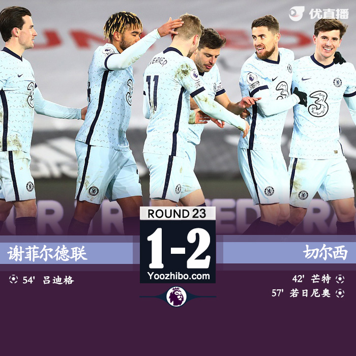 24直播网2月8日讯 北京时间2月8日03:15,2020-21赛季英超联赛第23轮,切尔西客场挑战谢菲尔德联。上半时刚开场伯克险些破门,维尔纳助攻芒特先拔头筹;下半时吕迪格乌龙送礼,维尔纳造点,若日尼奥点射再度领先。最终,切尔西客场2-1战胜谢菲尔德联,取得联赛三连胜。积分榜上,蓝军积39分升至第五位,谢菲尔德联仍位居垫底。