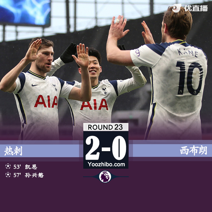 24直播网2月7日讯 北京时间2月7日晚20:00,英超联赛第23轮继续进行,热刺坐镇主场迎战西布朗。上半场,凯恩劲射中框后又失单刀良机,洛里扑出近距离头球攻门,双方均未改写比分。下半场,凯恩破门打破僵局,孙兴慜扩大比分,迪亚涅打入两球都越位在先。全场比赛结束,热刺2-0力克西布朗,结束三连败。
