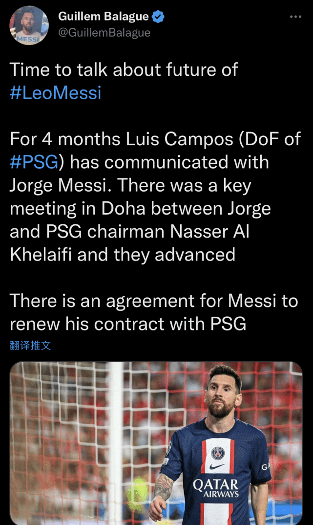 24直播网12月24日讯 晚,来自梅西传记作者,著名记者巴拉格(Guillem Balague)在个人社交账号上的透露,梅西与大巴黎续约一事已经达成协议,双方将会签订一份年限为“1+1”的合同。