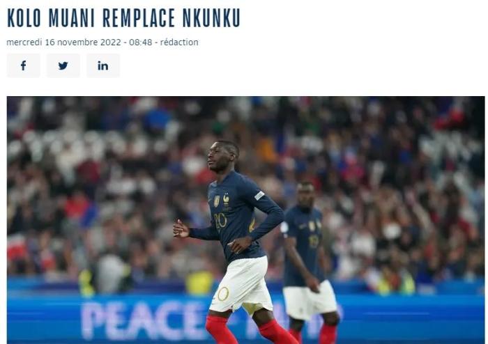 恩昆库在法国队的训练中和卡马文加拼抢时膝盖受伤,遗憾地退出世界杯。法国队很快宣布招入穆阿尼代替他。