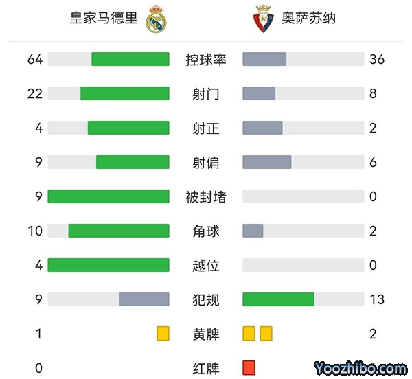全场比赛结束,皇马主场1-1战平奥萨苏纳,银河战舰各项赛事9连胜遭终结。
