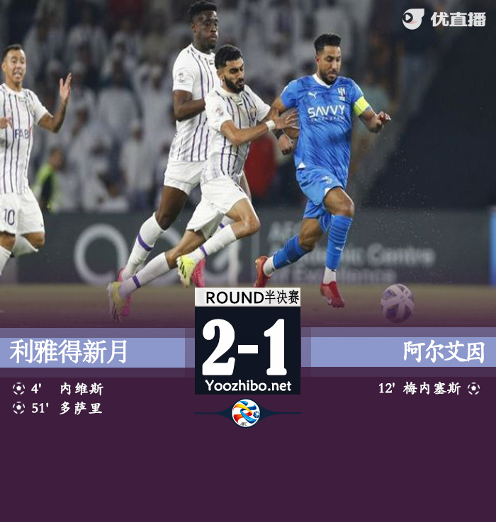 24直播网讯:北京时间4月24日亚洲足球冠军联赛 半决赛次回合,利雅得新月主场对阵艾因。上半场开场不到一分钟,迈克尔在禁区内被放倒判罚点球,鲁本-内维斯主罚一蹴而就。叶海亚-纳迪尔助攻埃里克破门,很快将比分扳平。下半场,萨勒姆-达瓦萨里禁区内得球起脚破门再次将比分超出。法拉赫-瓦利德接球的瞬间越位,帕拉西奥斯的进球被吹无效。拉希米犯规在先,帕拉西奥斯的进球再被吹掉。最终艾因两回合总比分5-4淘汰利雅得新月,成功闯进决赛。
