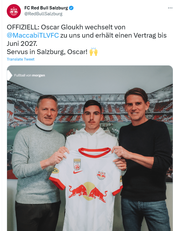 24直播网01月28日讯 萨尔茨堡红牛俱乐部官方宣布,以色列球员奥斯卡·格鲁克加盟球队,签约四年半。