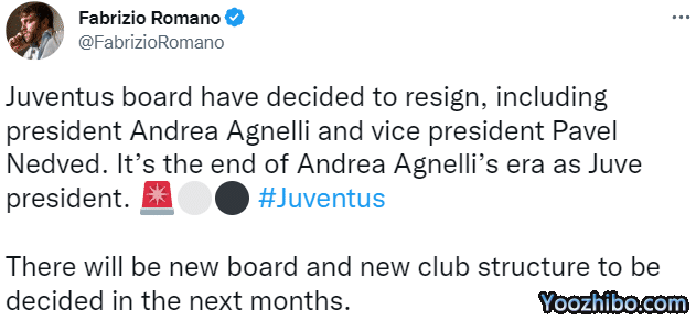24直播网11月28日据罗马诺、斯基拉等多位记者以及多家媒体报道,尤文图斯董事会已经决定集体辞职。