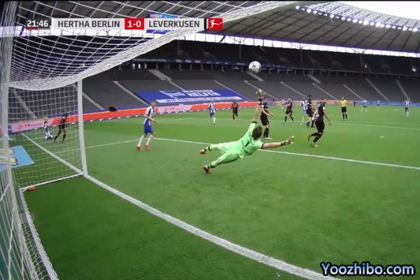 第22分钟,卢克巴基奥右路回敲,库尼亚得球右脚凌空抽射破门,勒沃库森领先,1-0!