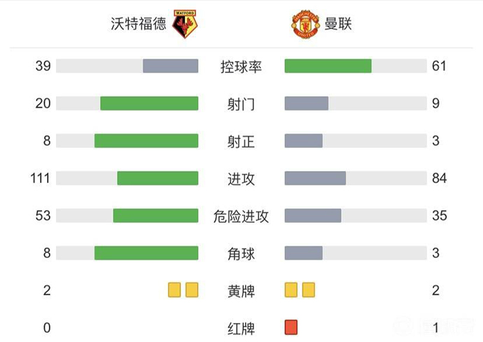 曼联1-4沃特福德 C罗助攻范德贝克替补破门马奎尔染红