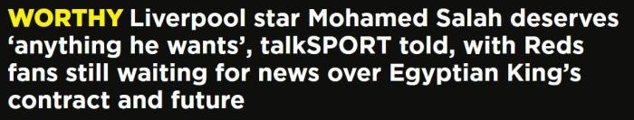 “对,萨拉赫就应该拿那么多,他配得上任何合同。或许更衣室里会有人因此而感到不满,但利物浦应该明白,萨拉赫是现在的世界最佳之一,不论其他人怎么想,都应该尽全力把萨拉赫留下。”
