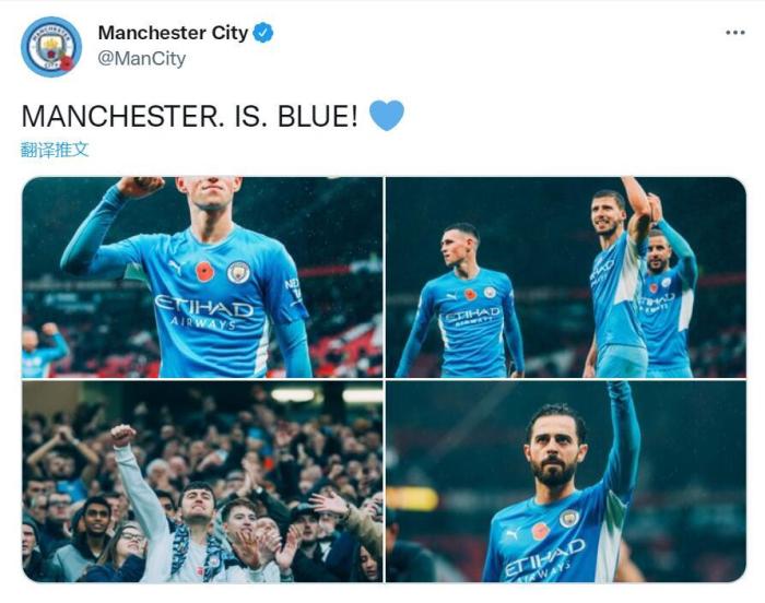 曼城官推赛后:曼彻斯特.是.蓝色的