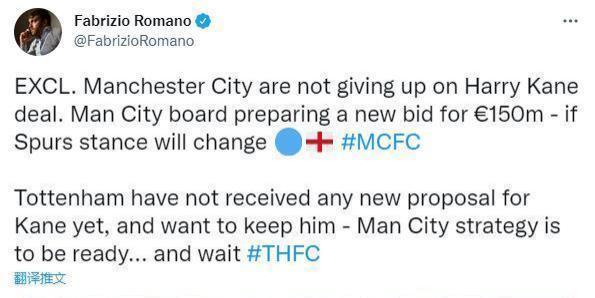 仍希望留住凯恩,但是曼城已经做好了一切准备,正式报价。