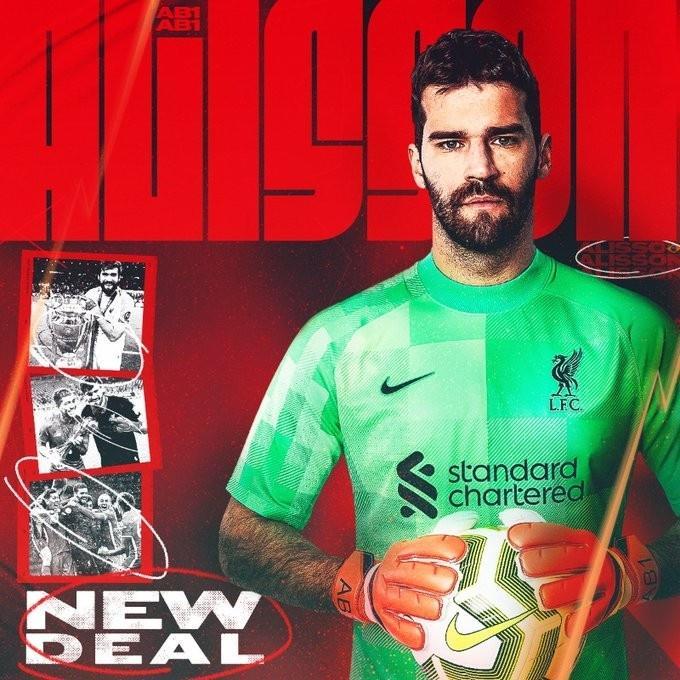 记者罗马诺表示,阿利森与利物浦的新约至2027年。