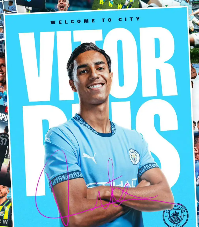 24直播网讯 官方消息,曼城签下19岁的巴西中卫维托尔-雷斯,双方签约至2029年,雷斯将身披22号球衣。据悉转会费为3500万欧元+未来转会费分成。